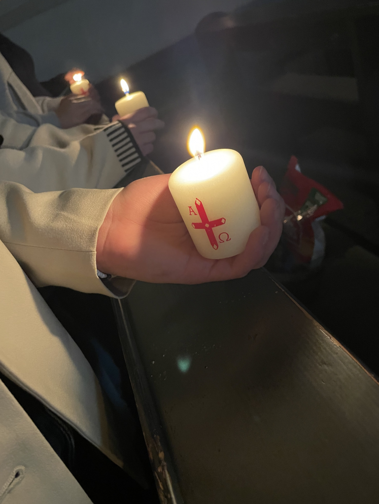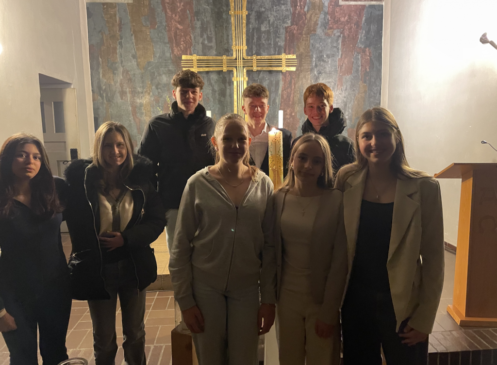 Sichtlich gerührt zeigte sich Finn am Ostersamstagabend: Der aufgeweckte Neuntklässler hatte sich nämlich nach reiflichem Überlegen dazu entschlossen, sich taufen zu lassen. Die feierliche Osternachts-Feier in der Christuskirche Eislingen bot einen wirklich würdigen Rahmen für dieses schöne Ereignis, mit viel Gesang, meditativen Texten und Kerzenlicht. Pfarrerin Pelkner fand sehr persönliche Worte für den Täufling, dessen Familie auch anwesend war. Finn besucht die 9. Klasse der Dr.-Engel-Realschule in Eislingen und auch ein beträchtlicher Teil seiner Mitschüler/innen war dabei. Josefin und Linja, ebenfalls aus der 9. Klasse, wirkten sogar aktiv mit, worüber sich der ebenfalls anwesende Klassen- und Religionslehrer von Finn natürlich besonders freute. Nach Osternacht und Taufe wurden Finn von seiner Klasse im Schein des Osterfeuers noch lustige Geschenke überreicht: Der begeisterte Angler bekam einen stilechten Hut für sein Hobby und passende Hausschuhe in Fischform, die er natürlich gleich an Ort und Stelle ausprobierte. Die Heiterkeit war groß, die Stimmung bestens: Gute Gemeinschaft ist einfach viel wert, in Kirche, Kommune – und auch in der Schule!