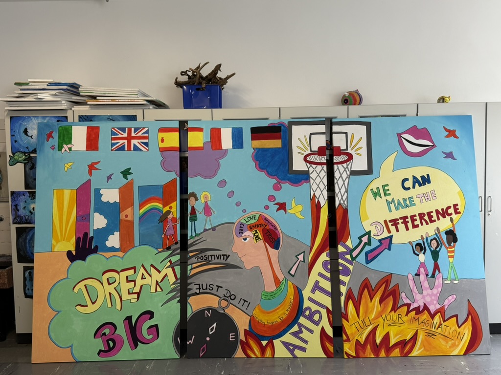 Aufgepasst: Es soll eine bisher unscheinbare Ecke unseres Schulhauses in ein farbenfrohes Kunstwerk verwandelt werden. Das Motiv dafür steht bereits fest – ausgewählt und entworfen von den kreativen Köpfen der 9d. Welche Ecke genau gestaltet wird, entscheidet sich noch in Absprache mit der Schule, doch klar ist: Sie wird später nicht mehr zu übersehen sein! Unser Ziel ist es, einen Ort zu schaffen, der Freude ausstrahlt, den Schulalltag ein Stück bunter macht und zeigt, was entsteht, wenn viele Hände und Talente zusammenarbeiten. Dieses Projekt lädt alle Teilnehmenden dazu ein, kreativ zu werden, neue Techniken auszuprobieren und gemeinsam etwas Dauerhaftes zu schaffen, das im Schulhaus bleibt.
