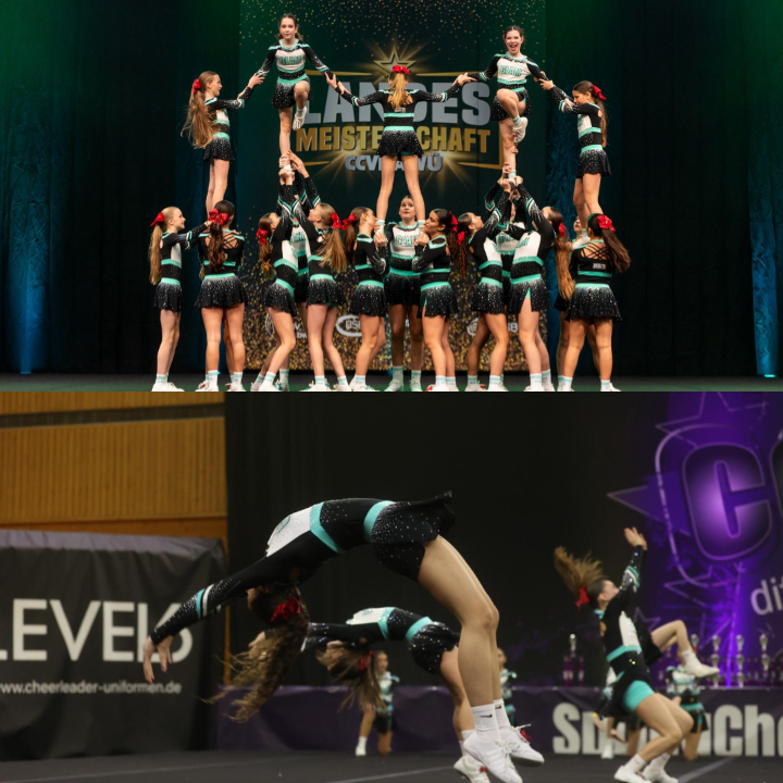 Hebungen, Pyramiden, Tumbling, Sprünge werden zu einer Choreographie zusammengestellt. Teamarbeit und Körperspannung brauchst du hier auf jeden Fall!